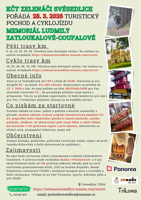 Klub českých turistů Zelenáči Svésedlice srdečně Vás zve 28. 3. 2026 na pochod a cyklojízdu, která se koná ve Svésedlicích.